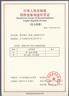 集團公司具有A級鍋爐制造許可證;D級壓力容器制造許可證;1級鍋爐安裝、改造維修許可證;壓力管道安裝許可證;50t級起重機安裝許可證。錦州鍋爐有限責任公司、錦州冠達鍋爐容器制造安裝…